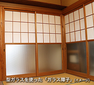 “ガラス障子の型ガラスが割れたので交換して”といったご依頼があった場合には代替品としてアクリルガラスをお勧めしています。